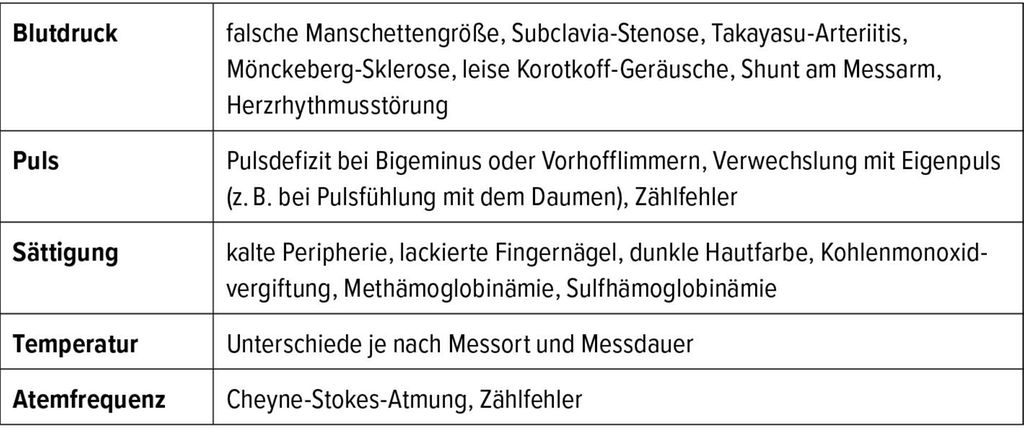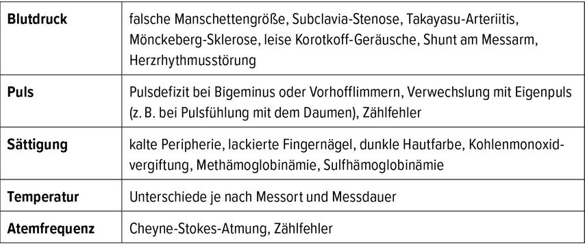 Wenn Sie während Ihres Nachtdienstes um zwei Uhr Früh von der Diplompflegefachfrau mit der Information „Herr Meier hat Thoraxschmerz oder Luftnot“ angerufen werden, sollten Sie am Telefon bereits nach den Vitalparametern fragen (Blutdruck, Puls, Sättigung, Temperatur und Atemfrequenz), ein EKG oder das EKG-Gerät bereitstellen lassen und die Patientenkurve bzw. Krankengeschichte ans Krankenbett bringen lassen. Geben die Vitalparameter Hinweise auf eine vitale Gefährdung, sollte der Patient monitorisiert werden. Auf dem Weg zu Herrn Meier machen Sie sich die Fallstricke bei den Vitalparametern bewusst (Tab.1) und denken Sie an die „red flags“ bei Thoraxschmerz und Luftnot (Tab. 2).