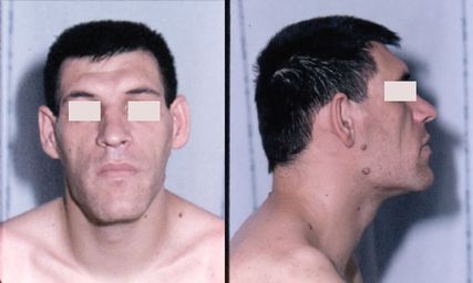 Fig.2: Traits du visage caractéristiques dans l’acromégalie (source: Chanson P, Salenave S: Acromegaly. Orphanet J Rare Dis 2008: 3; 17. Sous licence Creative Commons Attribution License 2.0 Generic [ https://creativecommons.org/licenses/by/2.0 ])