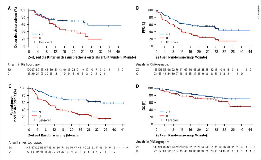 Allerdings konnten Patient:innen bei Progress unter O in den ZO-Arm wechseln (Cross-over: 34 Patient:innen).