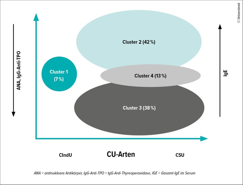 Abb. 1: Populationsverteilung auf die vier Cluster der chronischen Urtikaria (modifiziert nach Türk M et al. 2022)12
